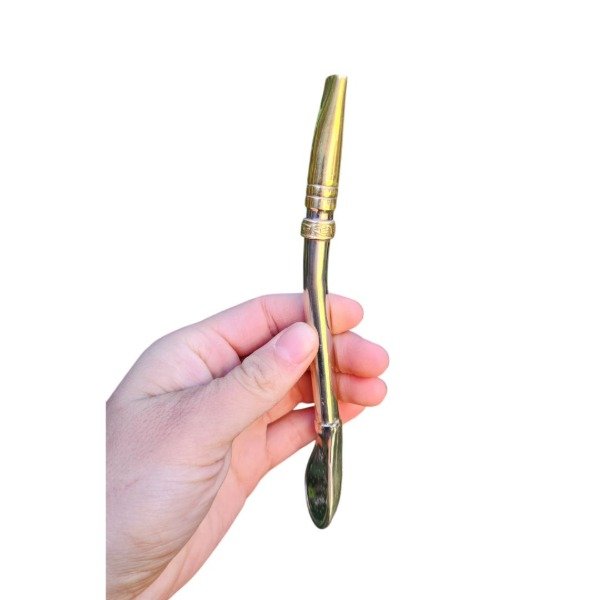 Bombillón liso semirrecto de Alpaca con pico de Bronce. Es un producto artesanal por lo que cada pieza es única.